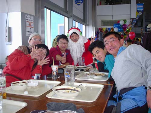 左から檜山さん、三好さん、横山、サンタ小野さん、岡本さん、神田さん 八方尾根109にて