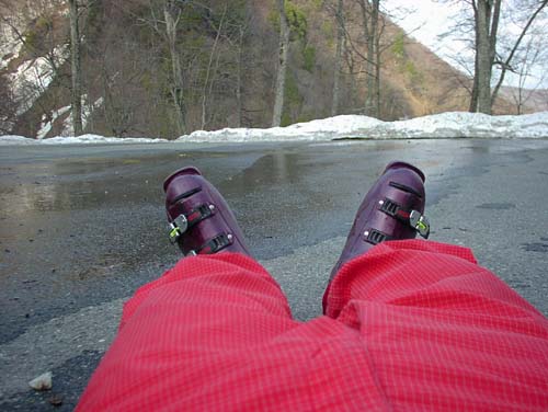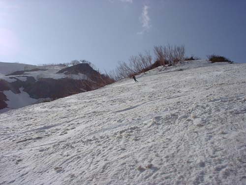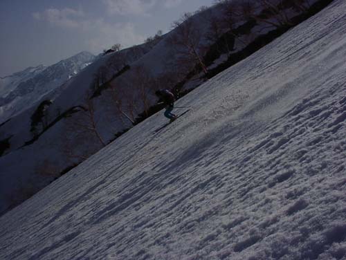 北ア 小蓮華南面金山沢 01.05.06 菊池 横山(文、写真) 最高のコンディションの中で金山沢を滑ることができました。しかしながらデジカメの調子が悪く途中のデータがぶっ飛んでしまいショック大でした。