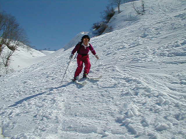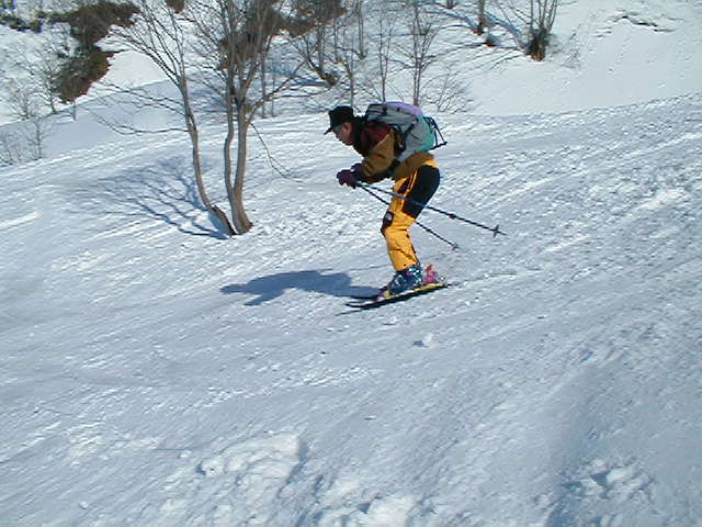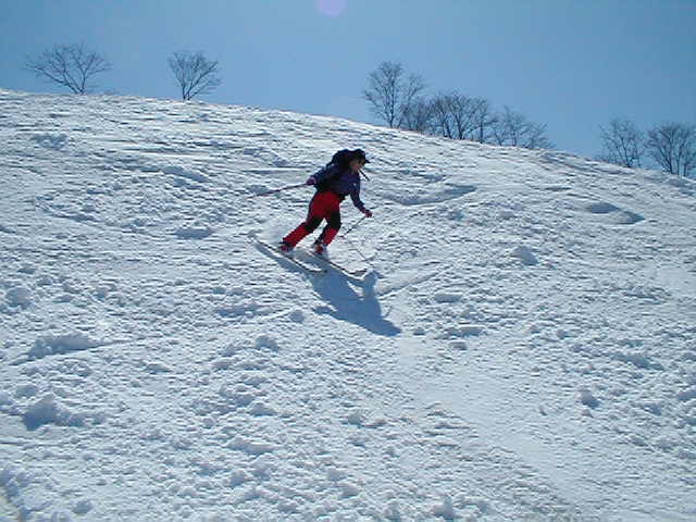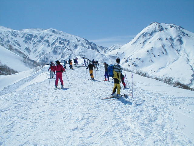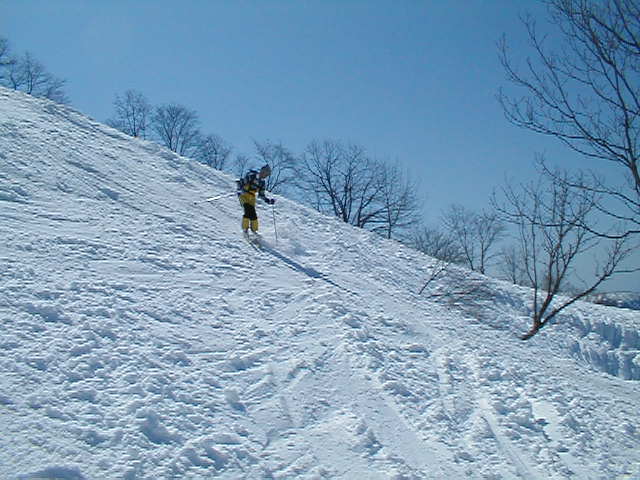 天候に恵まれ最高のへリスキーでした。スノーモービルが焼山北面のかなり上部まで上がっていました。あれを使えばかなり楽に入山できそうですが、やりすぎという気もします。ヘリコプターを使い入山している私はジレンマに陥るのでした。
