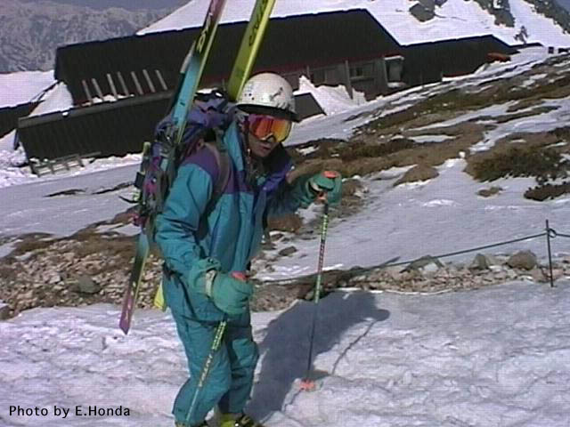 身支度を整え、白馬山荘から60度の斜面が待ちかまえる