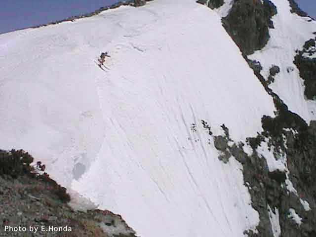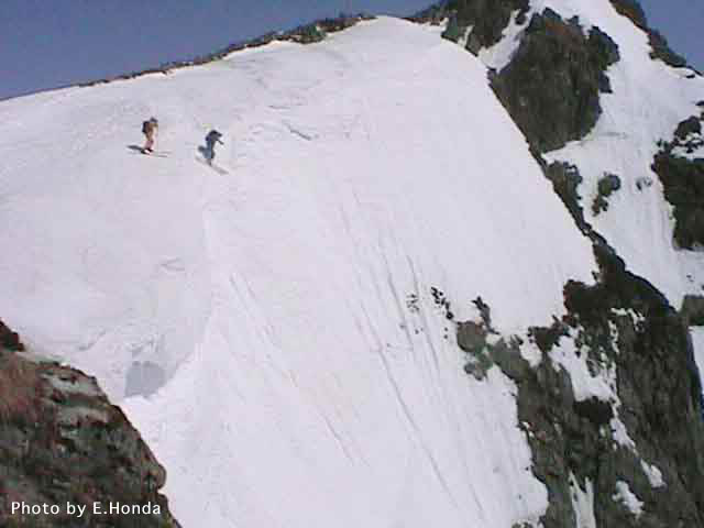 二号雪渓滑降開始地点へいざ出陣。