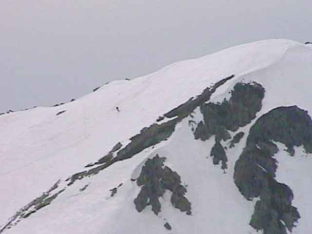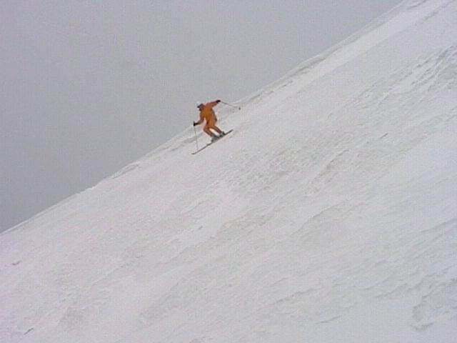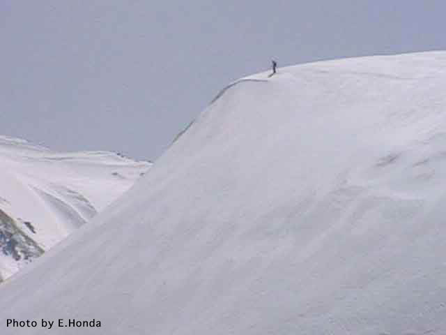 重苦しい空気をただよわせて二号雪渓滑降開始地点へ到着。