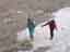 二人は高度差に慣れようと、滑り出し地点で腰を下ろした。