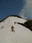 標高差が結構な急斜面なのだからなかなかきつい。ところどころ、雪渓に