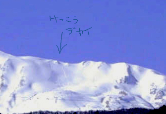 2000.2.7 荻原ケンジくんは残念ながらワックスが合わなかったようですね。今日小蓮華の斜面ででかい雪崩を発見しました。おーーー怖わーーー。korenge.jpg